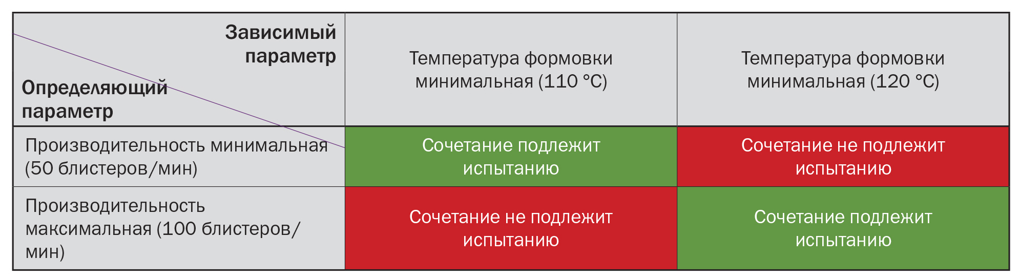 В «дигибридное скрещивание» по аналогии с генетикой не пойдём – думаю, общий принцип вполне понятен. Сочетания, выделенные в таблице 1 красной заливкой, не подлежат испытанию, а выделенные зелёным – подлежат. Совершенно очевидно, что нет нужды решать комбинаторные задачи, поскольку некоторые параметры меняются только совместно, и проверка сочетаний «всех со всеми» не имеет физического смысла. Более того, если исполнитель таких «валидационных экзорцизмов» расплавит пленку ПВХ на формовочных плитах, мастер смены поможет ему до конца жизни запомнить «практические аспекты работы упаковочного оборудования» - нелегко соскребать с блистерной машины остатки «роскоши». Пояснить эти нехитрые взаимосвязи с легкостью может любой вдумчивый оператор линии, но приходится порой сожалеть, что они редко имплементируются в отчетах о квалификации. А это формирует уязвимости при обосновании подходов в рамках различных аудитов – вдумчивые операторы редко представляют отчеты регулятору, поэтому достаточно часто случается такой «коммуникационный разрыв».