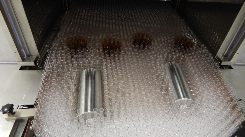 Нужно обратить внимание на достижение эффекта депирогенизации – речь идёт о температуре, измеренной внутри контейнеров, а не в пустом туннеле и/или снаружи контейнеров. Датчики следует располагать именно внутри контейнеров, которые, в свою очередь, должны плотно заполнять всю ширину конвейерной ленты (рис. 2).