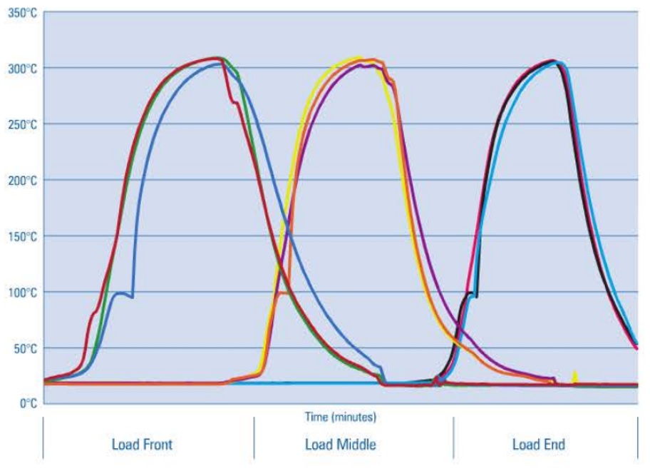 С одной стороны, понятно, что большой разброс значений температуры приведёт к неравномерному прогреву и неодинаковому стерилизующему и депирогенизационному эффекту. С другой стороны, если эти эффекты достигнуты, возникает вопрос: в чём проблема разброса по температуре, скажем в 20-30 ℃, во время нахождения в зоне депирогенизации? И, главное, если мы превысим наш, сугубо умозрительный критерий, скажем в 25 ℃, то какими могут быть наши корректирующие действия при прочих устраивающих нас результатах? Будем «играть» с ТЭНами, со скоростями, с перепадами давлений? А главное, для чего? Если в зоне охлаждения показано равномерное остывание (и у нас нет ситуации, когда на розлив, к примеру, белкового раствора подаются контейнеры с температурой от 30 ℃ до 60 ℃), а также не вызывает вопросов стерильность и апирогенность контейнеров, то фактический разброс температуры во время нахождения в зоне стерилизации (депирогенизации) я бы предложил фиксировать только как определяемое значение, характеризующее процесс и техническое состояние оборудования. Впрочем, это мое личное мнение, не противоречащее при этом нормативным документами и руководствам.