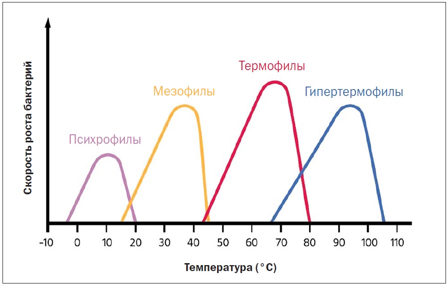 Рисунок 2. Зависимость скорости роста микроорганизмов от температуры