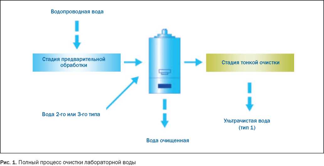 Качество лабораторной воды имеет решающее значение для возможности проведения точных и эффективных экспериментов. Стадия тонкой очистки воды, обеспечивающая получение ультрачистой воды (тип 1), часто становится объектом повышенного внимания, поскольку эта вода используется для наиболее ответственных лабораторных проектов. Тем не менее, общий процесс очистки воды включает в себя не только стадию финишной или тонкой очистки, но также и стадию предварительной обработки, которая, как правило, удаляет 95-99% загрязнений, присутствующих в исходной воде (рис. 1) .