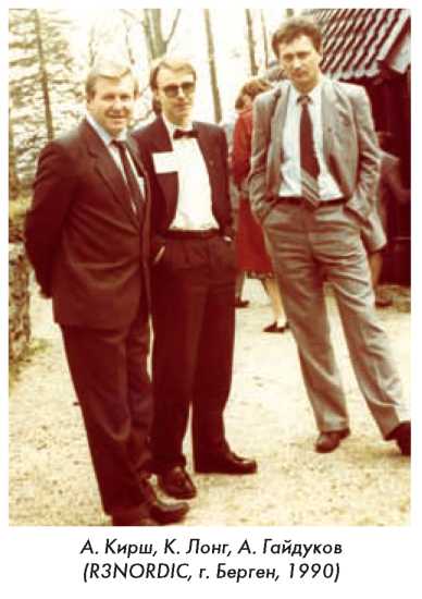 В начале 1990 года я получил от Лонга из Финляндии приглашение участвовать в выставке-конференции R3NORDIC в г. Бергене (Норвегия). Валюту на поездку в те времена было получить очень трудно. Спасибо Ю.И. Тычкову, он понял необходимость поездки и, более того, включил в состав делегации научного руководителя проблемы создания фильтров д.х.н. А.А. Кирша, одного из главных специалистов по аэрозолям, автора математической модели диффузионной фильтрации, доказавшего непригодность фильтров Петрянова для очистки воздуха от субмикронных частиц, и А. Лукичева. В Норвегии А. Кирш выступил с докладом об исследованиях в области фильтрации аэрозолей, а мой доклад был посвящен состоянию индустрии ЧП в СССР. Помню, что на доклад А.А. Кирша приехал даже ведущий аэрозольщик из США. В Бергене мы познакомились с д-ром Оке Меллером, д-ром Олафсоном, Кари Аалто и другими ведущими специалистами Скандинавии. Все они относились к нам с большим радушием и вниманием, много и подробно рассказывали о своей организации, делились опытом.